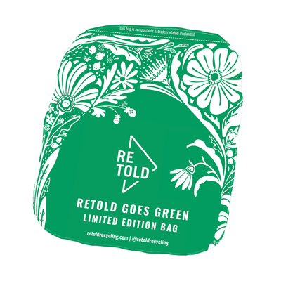 Our limited-edition Retold Goes Green Bag—designed by local PNW artist TryCarrots!