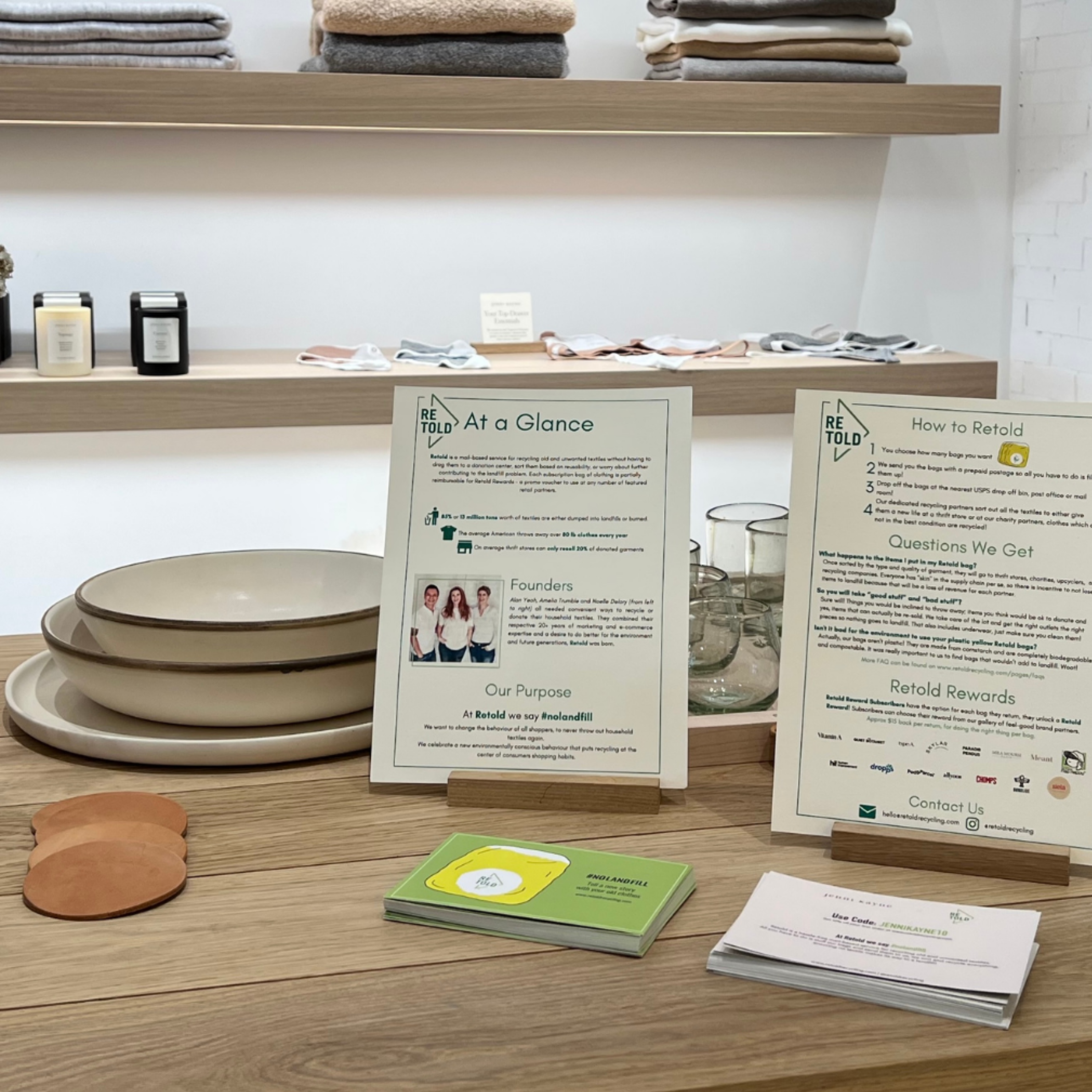 Gain exposure through Retold Rewards by offering our subscribers a discount code for your website when they return their Retold bag.